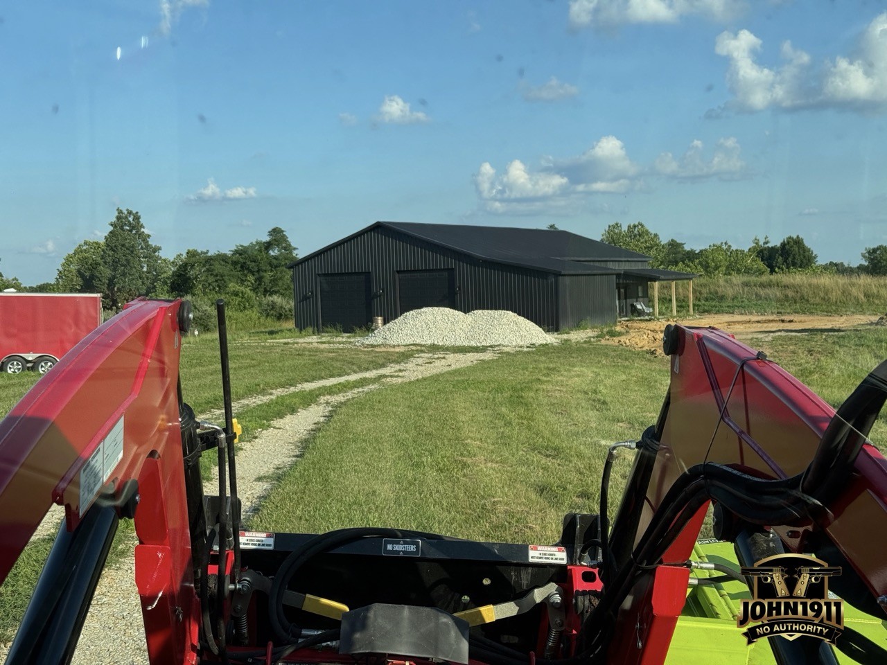 On the downslope of gun range construction: putting down the gravel. Here is 60 tons of #2. That is now down, and Monday 80 more tons of gravel is getting dropped. After that, could be another 60-80 tons for the final work in back.