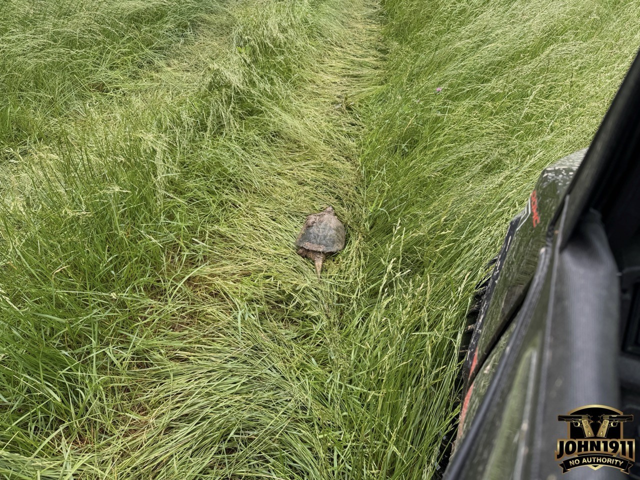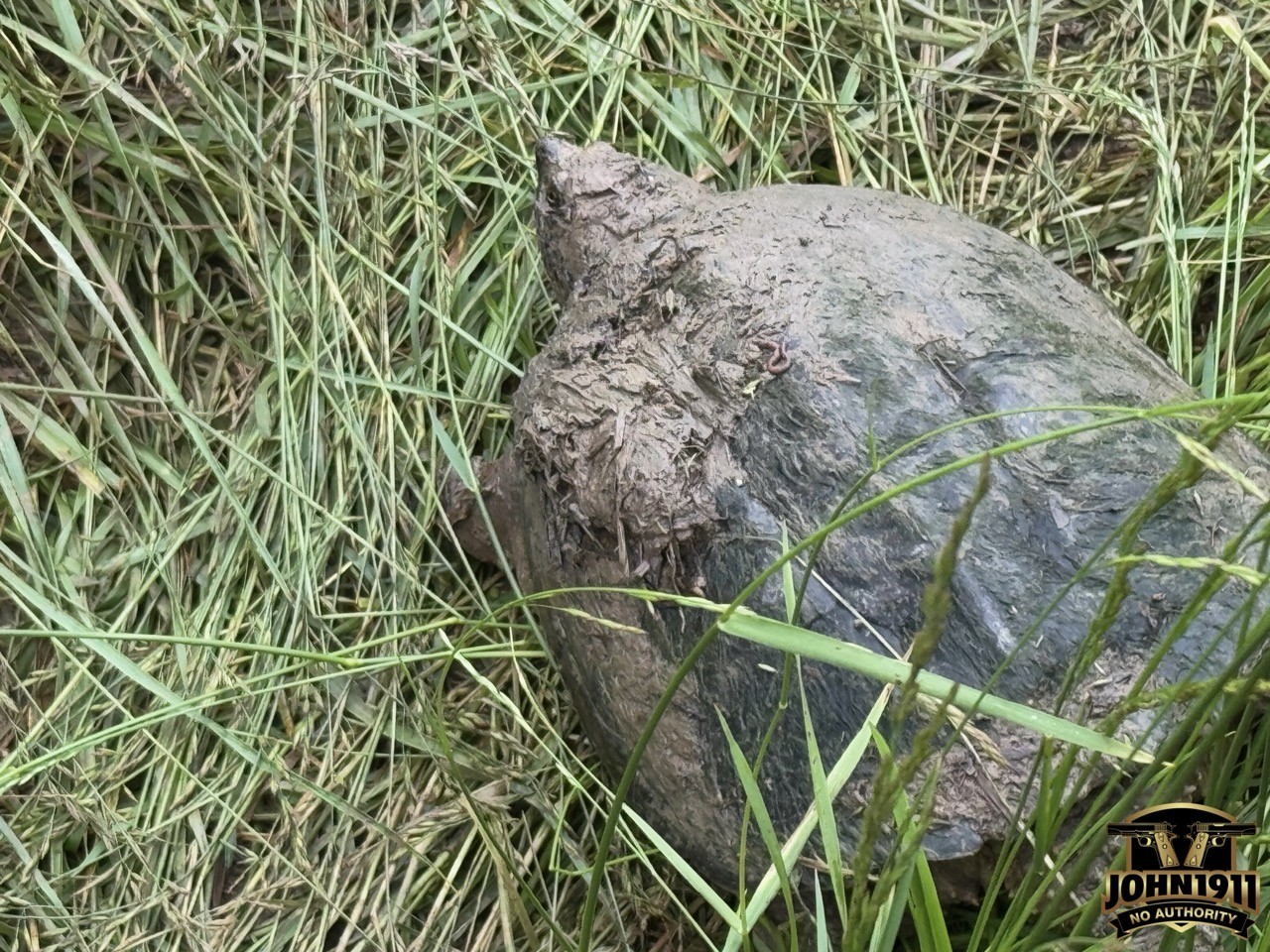 Since it’s Friday let’s keep things a little more light-hearted. While driving on the rifle range a few days ago, I accidentally ran over a snapping turtle. Didn’t know it until I was headed back and saw him (notice the clump of mud on his shell).