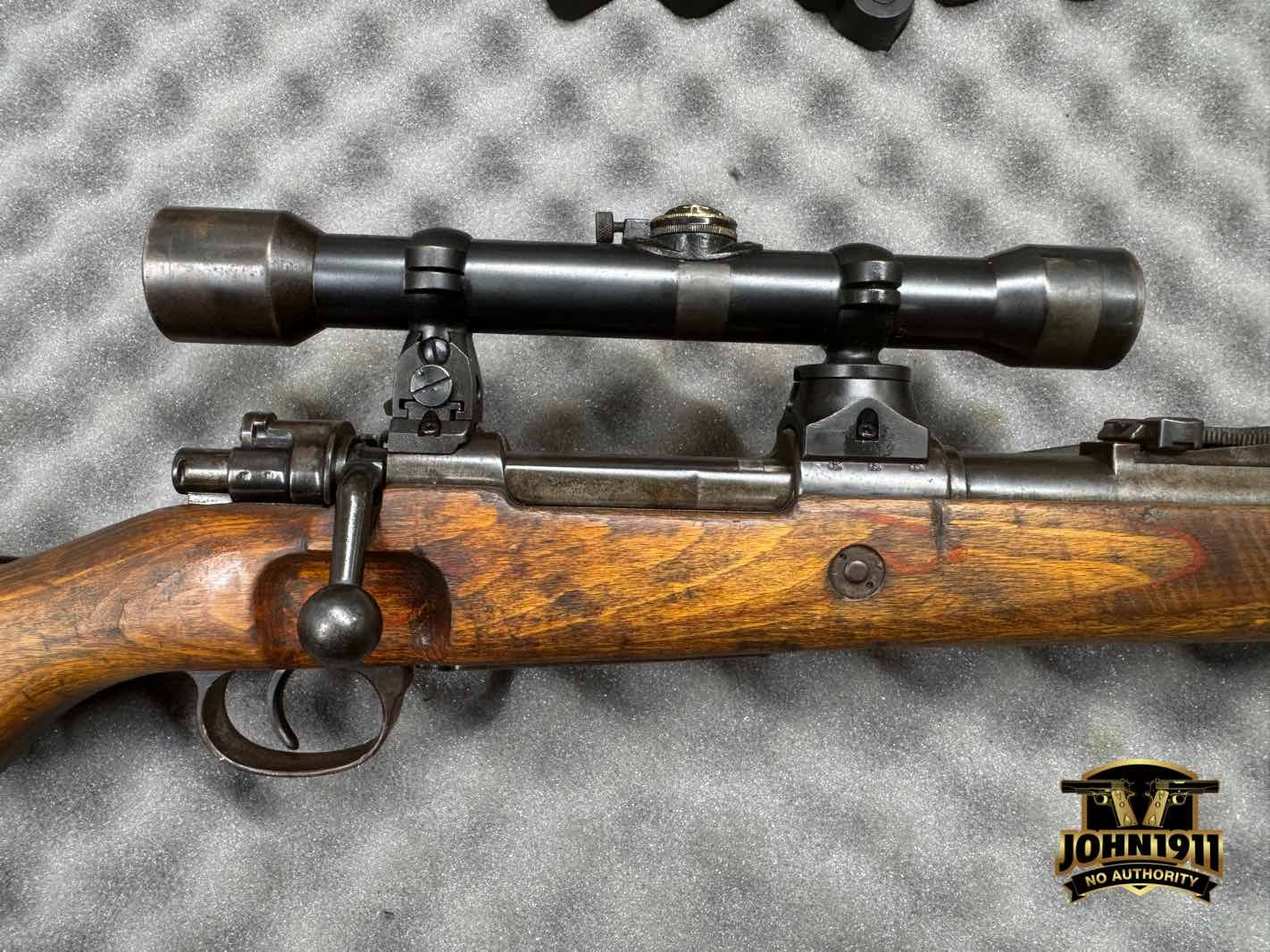German K98 Sniper. There is a story here that I will go into later on video. Just know the scope bases are reproductions.